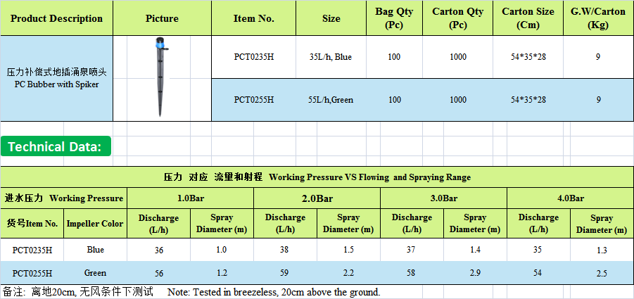 1. Avec une large plage de réglage pour l'écoulement, bon pour l'irrigation des terrains accidentés.